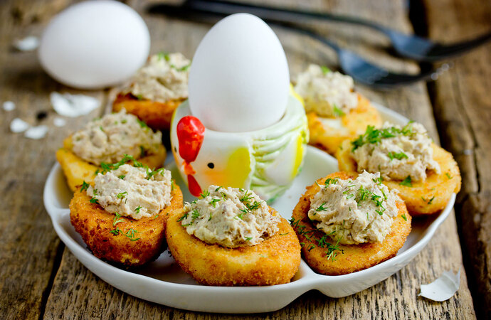 Coraz częściej podczas wielkanocnego śniadania można na stole dostrzec ryby. Nie tylko jako główne składniki potrawy np. śledzie w śmietanie, czy ryba po grecku, ale również, jako pasty czy składniki sałatek. Doskonałym pomysłem na urozmaicenie sposobu podawania jajek jest nafaszerowanie ich łososiem.