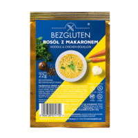 Low protein soups, you can buy in our store include noodle and chicken bouillon, tomato soup with noodles and mushroom soup with noodles. All you have to do is pour the content of the bag into the mug and pour over with 200 ml of boiling water, stir thoroughly and enjoy the unique taste of our soups. Bearing in mind both high quality of gluten-free soups as well as the satisfaction of our clients,we we make every effort to eliminate: eggs, milk, taste enhancers, or monosodium from our products.