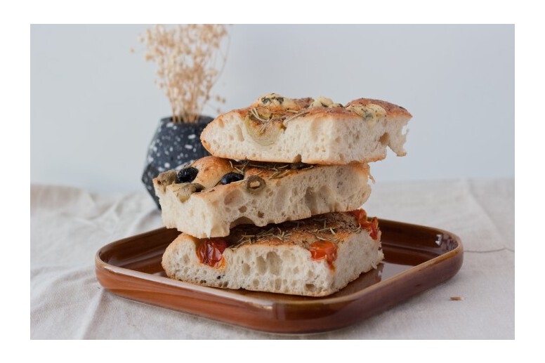 Focaccia podawana jest w formie przystawki lub dodatku do głównego dania. Wielokrotnie zastępuje Włochom chleb. Tradycyjnie podawana jest z dużą ilością oliwy z oliwek, gruboziarnistą solą i ziołami. Jednak w zależności od regionu znajdziesz warianty focaccii z pomidorami i oliwkami, serem czy nawet na słodko. W naszym przepisie skupiliśmy się na podstawowej wersji focaccii, jednak wzbogaciliśmy ją odrobiną pomidorów i czarnych oliwek. Może zatem z powodzeniem być propozycją na obiad.