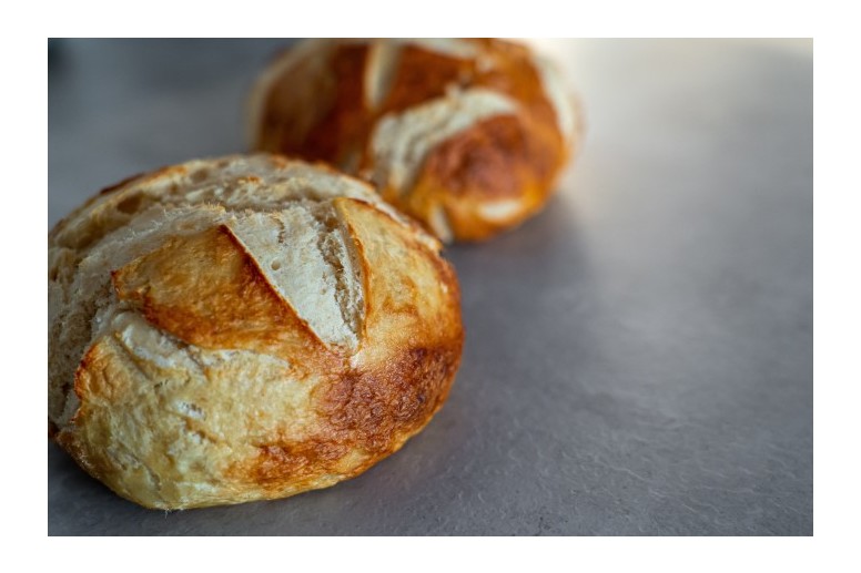 Na blachach do pieczenia rozłóż papier i nastaw piekarnik na grzanie góra-dół z temperaturą 250°C. Ciasto na bułki uformuj w kulki o wielkości piłek tenisowych. Opcjonalnie przed położeniem na blachę możesz je obtoczyć w mące bezglutenowej. Piecz przez 25-30 minut. Pod koniec pieczenia możesz zmniejszyć temperaturę do 220°C, aby wierzch bułek się nie przypiekł.