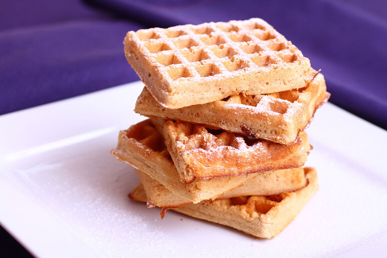 Wszystkie składniki dokładnie wymieszać, smażyć w gofrownicy na złoty kolor. Gofry można podawać z dżemem, bita śmietaną i owocami.