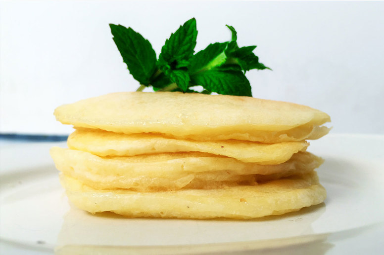 Gotowe pancake ozdabiamy miętą i słodzimy wedle uznania cukrem pudrem, miodem, syropem klonowym.