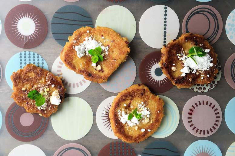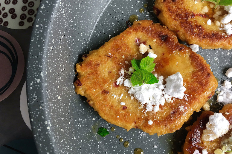 Do dekoracji: cukier puder, syrop klonowy/miód, liście świeżej mięty.