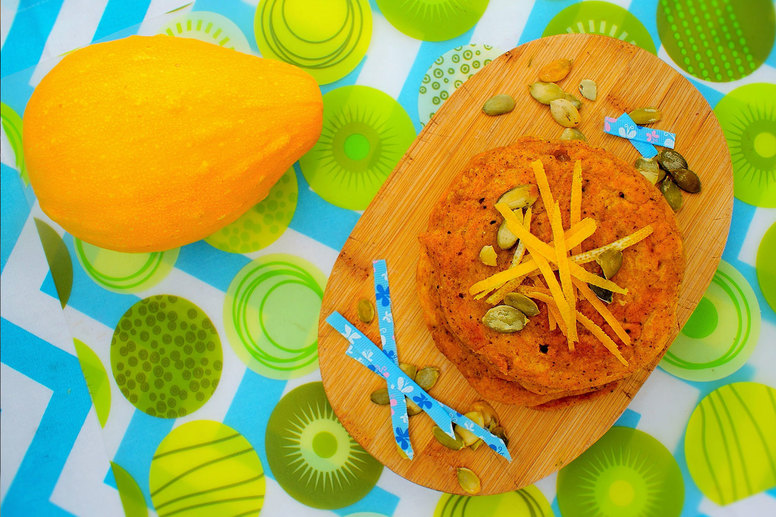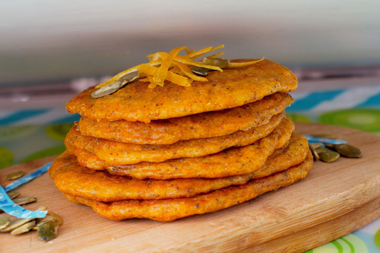 Odpowiednią ilość dyni mieszamy z koncentratem mąki domowej, jajkiem, proszkiem do pieczenia i cynamonem. Czekamy chwilę i mieszamy ponownie, a następnie przy pomocy łyżki wykładamy odpowiednie porcje na rozgrzaną patelnię z masłem. Placki rozsmarowujemy, nadając im pożądany kształt i nieco spłaszczamy łyżką, aby skrócić czas przygotowania do minimum. Smażymy je na średnim ogniu ok. 7-10 minut z każdej strony. Podajemy saute albo z dodatkiem jogurtu lub śmietany.
