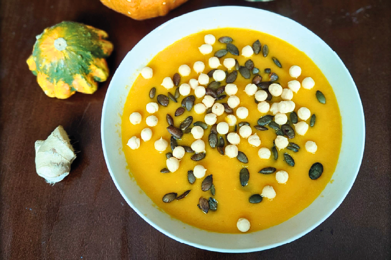 Zupa dyniowa z imbirem i bezglutenowym groszkiem ptysiowym